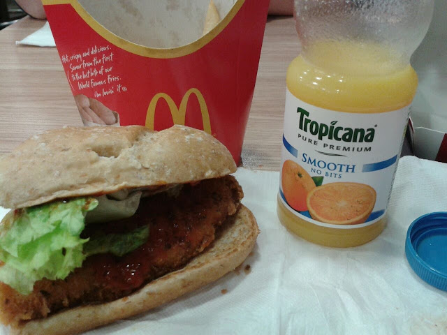 Hey, it was fine. I managed. And the Chicken Burger with Spicy Salsa was actually delicious. I was impressed with the speed of service, the chips (Catherine's, but I stole some), the burger and the roll.